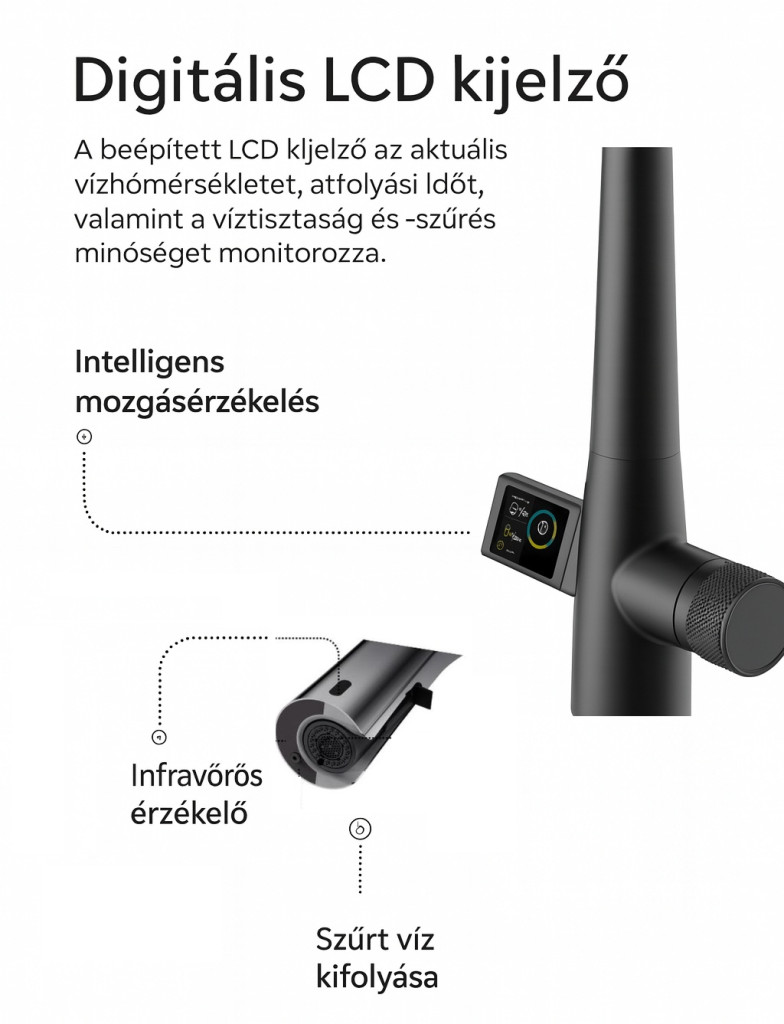 • Automatikus kikapcsolás – energiatakarékos, 120–180 másodperc után leállítja a vízfolyást.