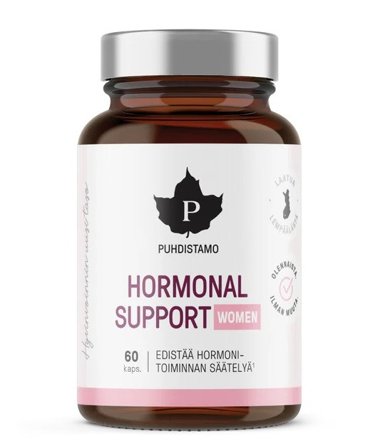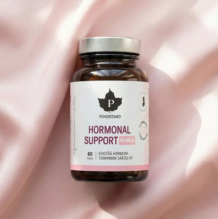 A Puhdistamo Hormonal Support kifejezetten nők számára fejlesztett étrend-kiegészítő, amely a szervezet természetes hormonális működésének támogatására szolgál, az általános jó közérzet részeként. A készítmény gondosan kiválasztott növényi kivonatokat és vitaminokat ötvöz egy hatékony, jól összeállított formulában – felesleges adalékanyagok nélkül.