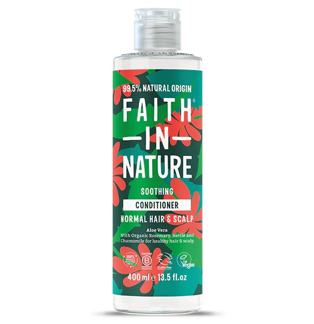 A Faith in Nature Aloe Vera Hajkondicionáló kíméletes, mégis hatékony ápolást nyújt normál hajra és fejbőrre.