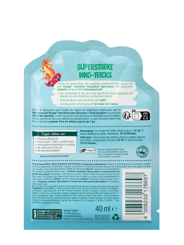 Aqua (víz), Sodium Lauryl Sulfate, PEG-40 Sorbitan Peroleate, Cocamidopropyl Betaine, PEG-18 Glyceryl Oleate/Cocoate, Glycerin, Parfum (illat), Jojobaolaj (Simmondsia Chinensis Seed Oil), Körömvirág-kivonat (Calendula Officinalis Extract), Pyrus Malus (alma) gyümölcs-kivonat, Citrus Aurantium Dulcis (narancs) gyümölcskivonat, CI 14700, CI 47005, CI 42051, Citric Acid, Sodium Chloride, Tocopherol, Hydrogenated Palm Glycerides Citrate, Sodium Benzoate, Glycine Soja (szójaolaj).