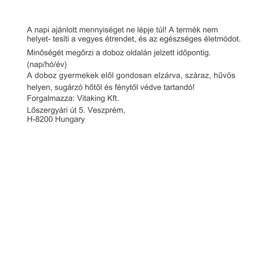 A termék nem helyettesíti a vegyes étrendet, és az egészséges életmódot.