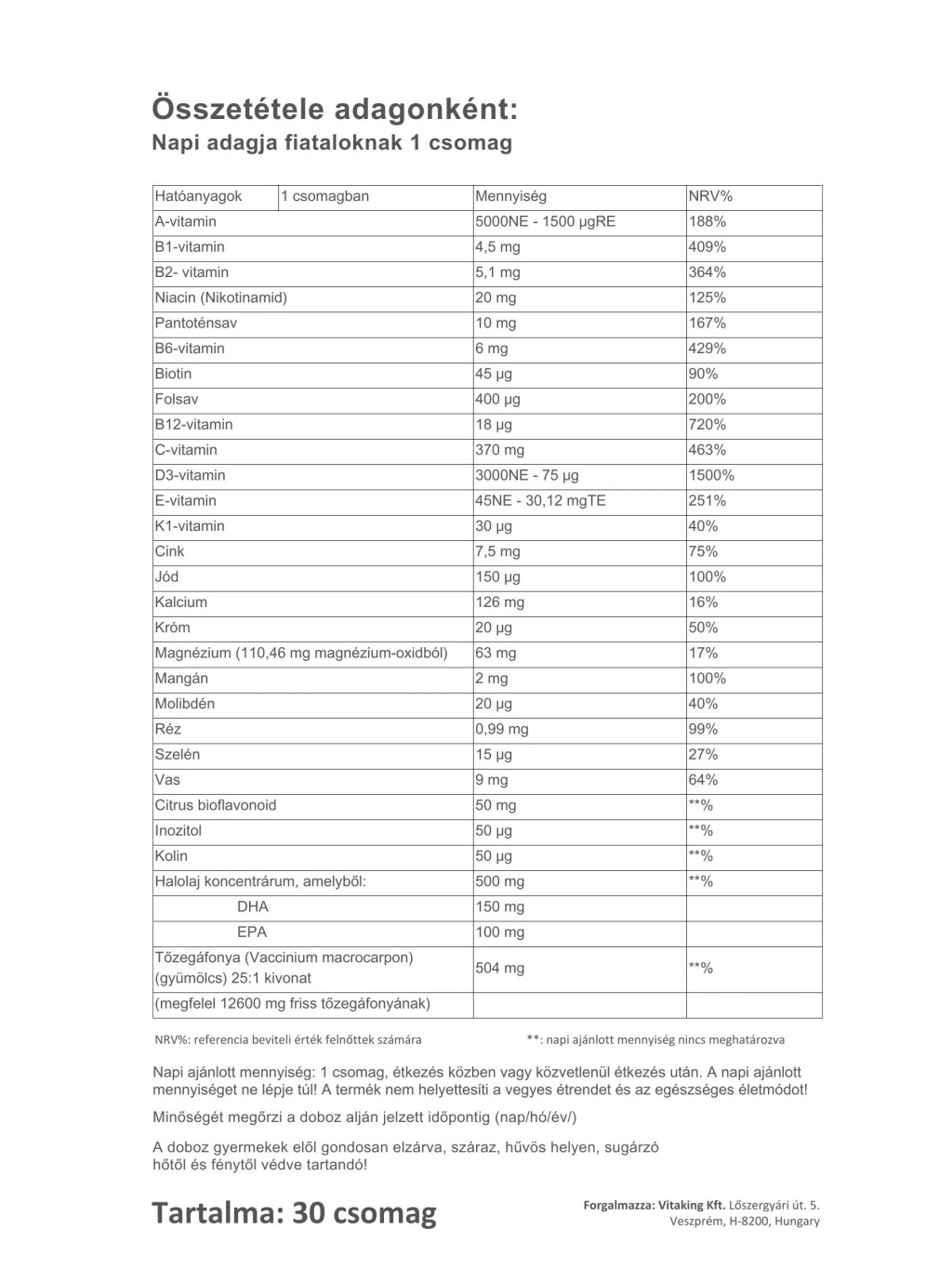 - Vitaminok és ásványi anyagok könnyen fogyasztható kis tablettákban