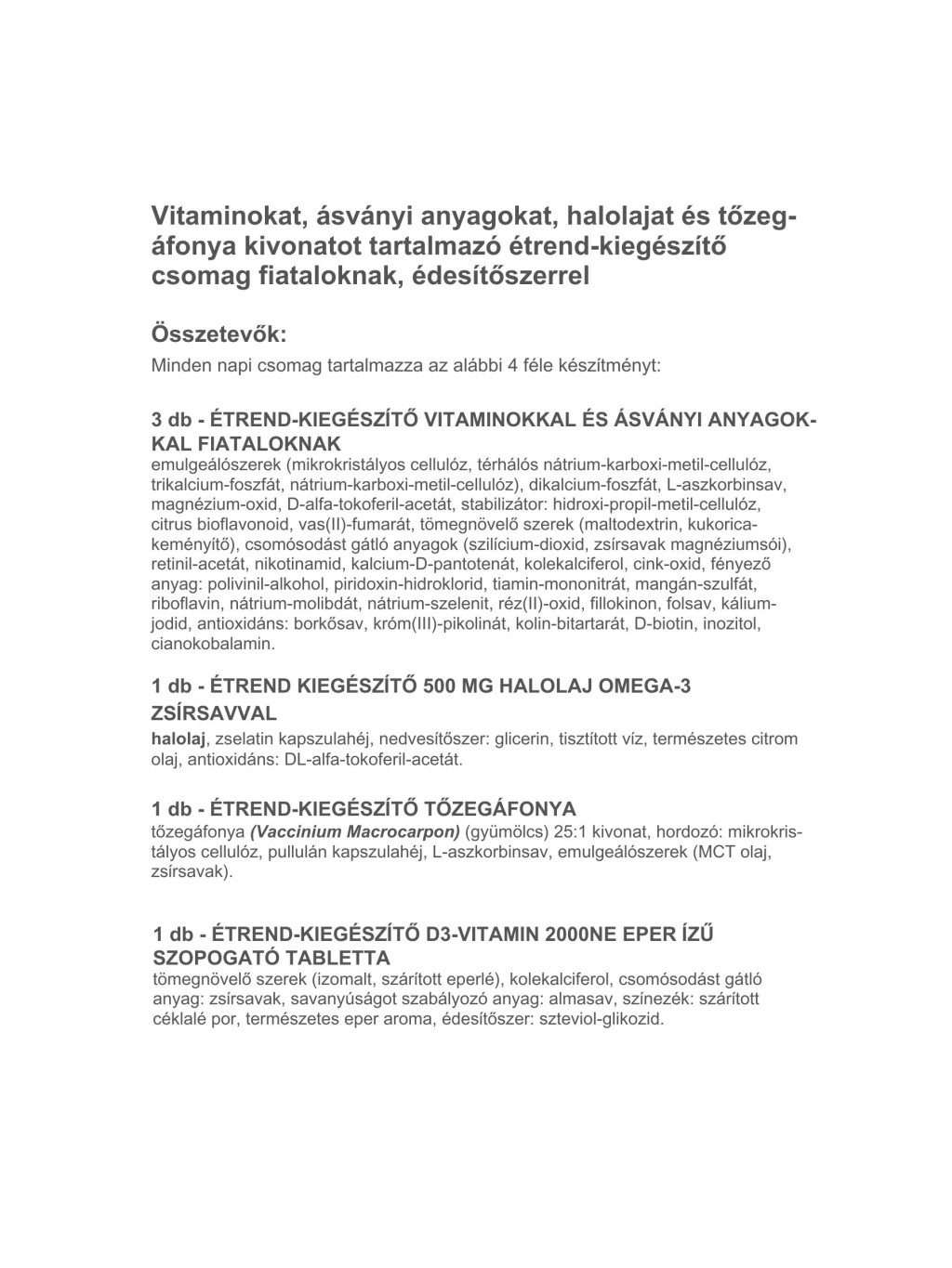 A modern életvitel, az iskolai terhelés, a sport és a szociális élet mind komoly energiát igényel a fejlődő szervezettől. Éppen ezért ebben a multivitamin csomagban kiemelten fontos tápanyagokat válogattunk össze, amelyek hozzájárulnak a normál energiatermelő anyagcsere folyamatokhoz, az idegrendszer megfelelő működéséhez, valamint a csontok és az izmok egészségéhez.
